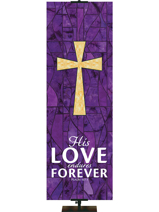His Love Endures Forever - Cross Church Banner Stained Glass Classics