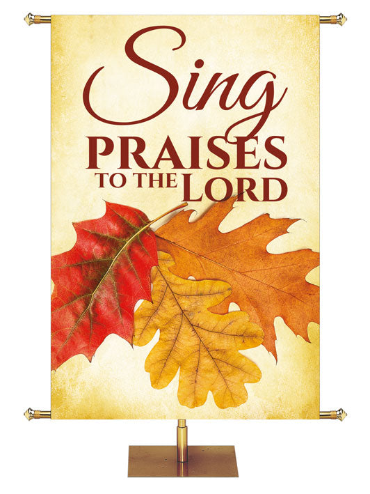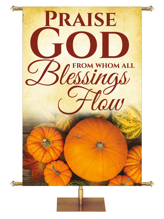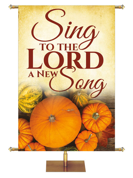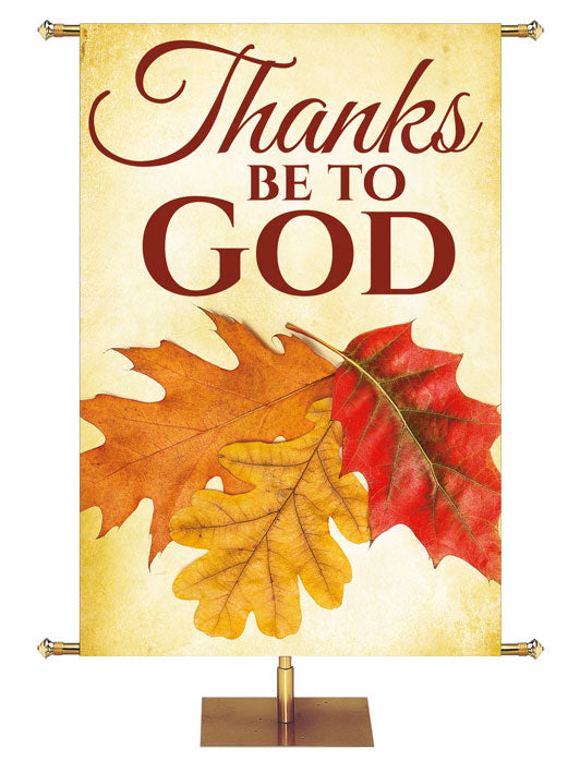 Autumn Theme Church Banners printed on quality satin fabric and trimmed to accentuate designs for Fall and Thanksgiving. Sculpted Church Banners available in three sizes and Custom Option Upgrade Available.