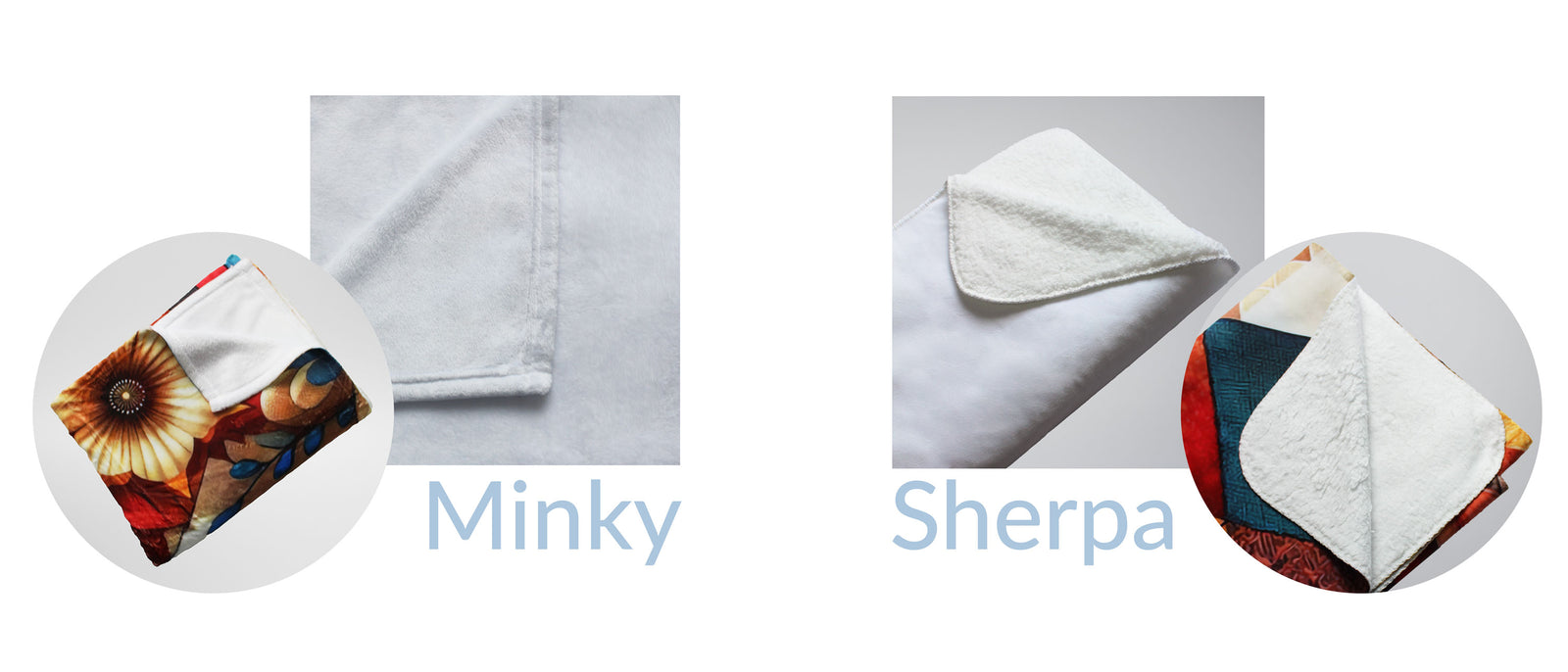 Wrap yourself in comfort with our thoughtfully designed throw blankets. Our Minky blanket is a lightweight flannel fleece with a velvety touch. Our Sherpa blanket delivers the perfect blend of softness and warmth with its plush, wool-like backing for an ultra-cozy feel.