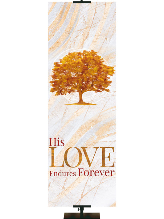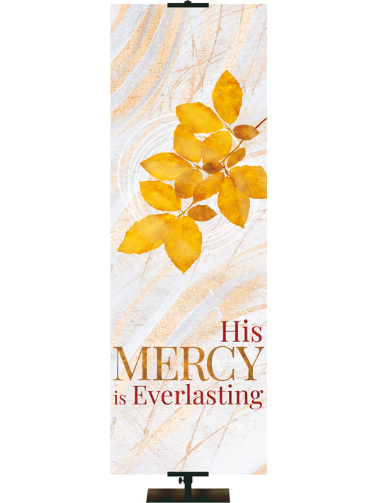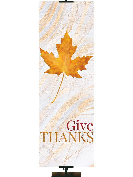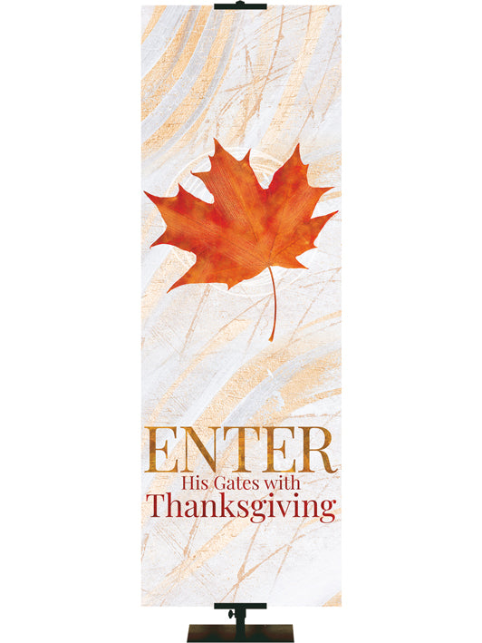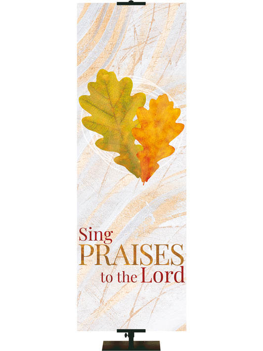 Imágenes rústicas tradicionales de otoño en tonos bronce y cobre con mensajes de alabanza y gratitud adornan estos hermosos estandartes diseñados para el culto de otoño y Acción de Gracias . Muchos tamaños para elegir. Opciones personalizadas disponibles.