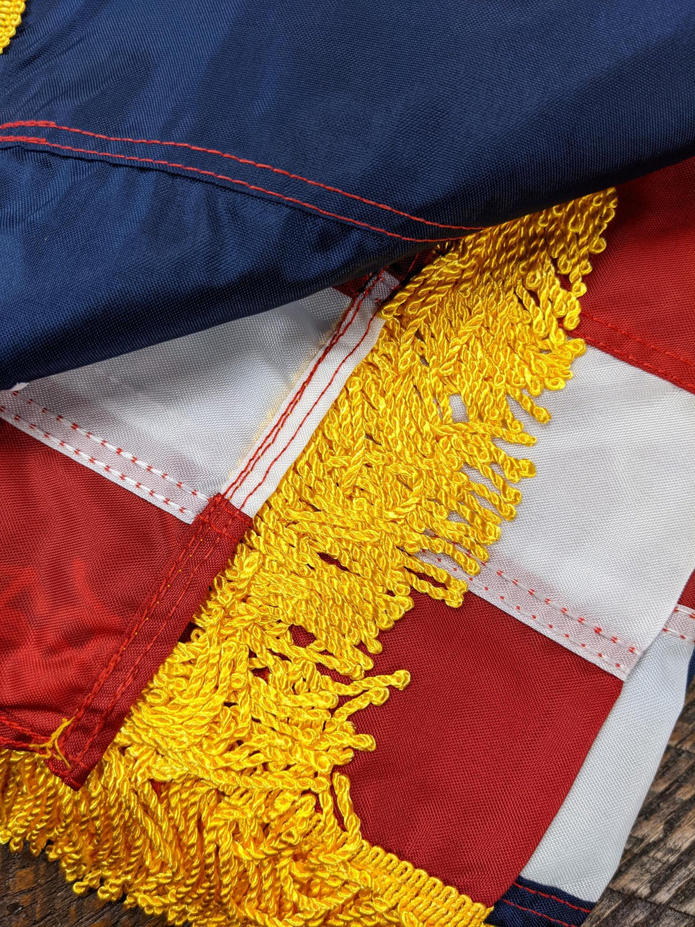 Bandera de EE. UU. para interiores, de nailon cosido con dobladillo de poste y flecos
