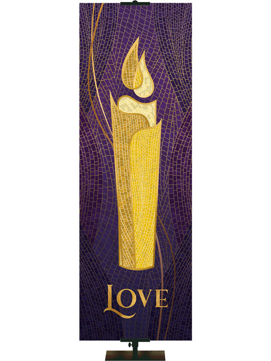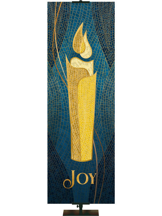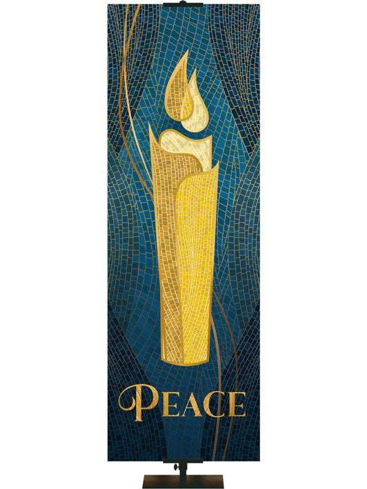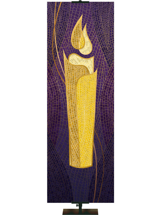 Hope, Peace, Joy and Love Banners in Mosaics of Advent design. Each available in Blue and Purple for every Sunday of Advent. Don’t forget to order the Christ candle!